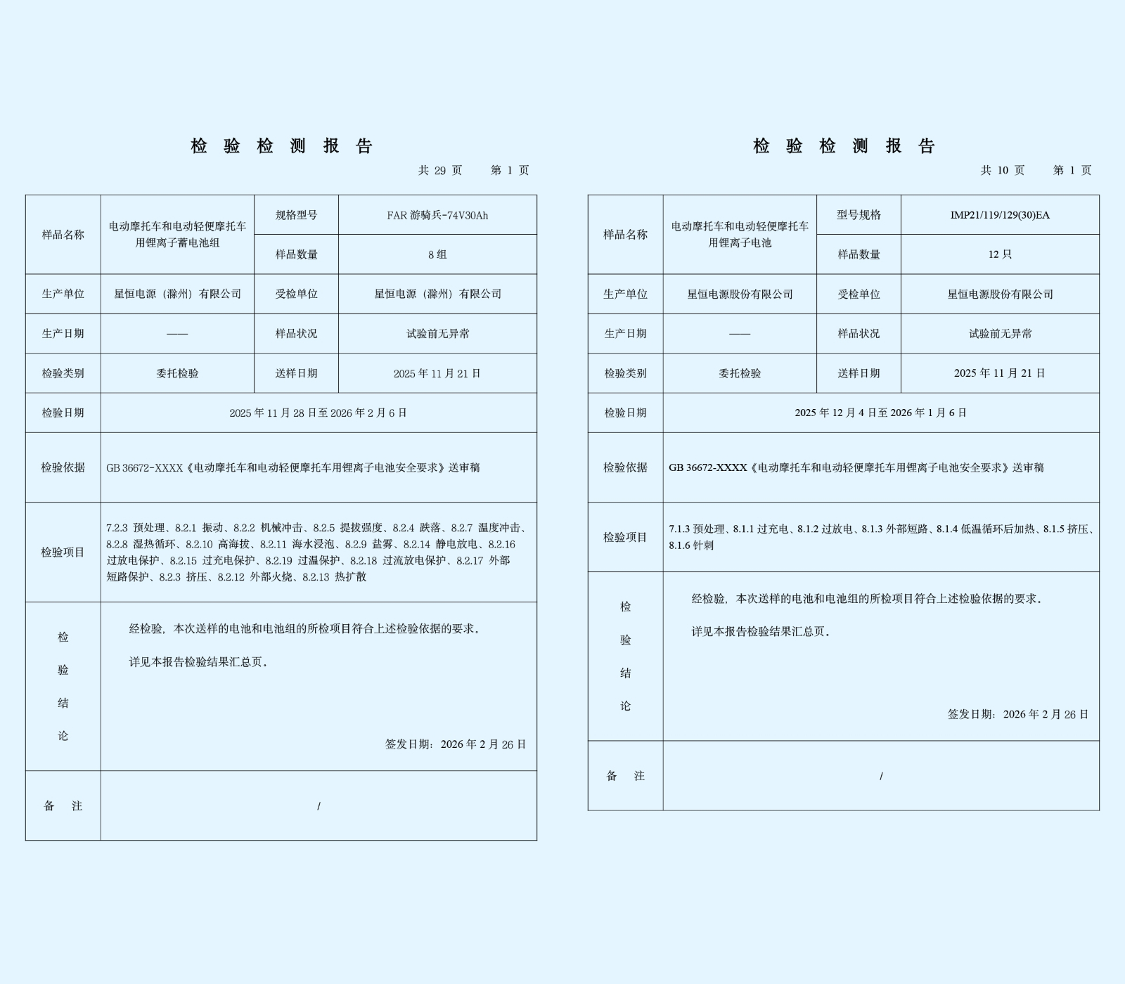 星恒电源本次通过测试的产品包括北极星电芯和FAR游骑兵电池。